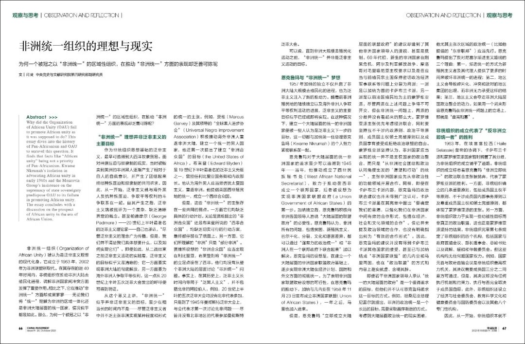 Why did the Organization of African Unity (OAU) fail to promote African unity as it was supposed to do? This essay dives into the history of Pan-Africanism and OAU to unravel this question. It finds that facts like “African unity” being not a priority of Pan-Africanism, Kwame Nkrumah’s isolation in advocating African unity in early 1960s and the Monrovia Group’s insistence on the supremacy of state sovereignty predispose OAU to its failure in promoting African unity. The essay concludes with a discussion on the prospect of African unity in the era of African Union.