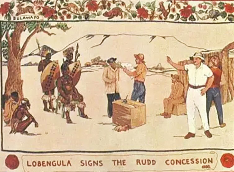 经过三个多月的打点活动和等待后,洛本古拉同意授出租让权,签署了《拉德租让协议》(Rudd Concession)。协议规定,受让人享有对“马塔贝莱兰、马绍纳兰及相邻领地”的金属和矿产的独占权,并享有相应的收益。作为回报,受让人除一次性向国王提供1000支步枪、100000套弹药、1艘可在赞比西河上航行的武装艇外,还要每月向洛本古拉及其后继者支付100英镑。
